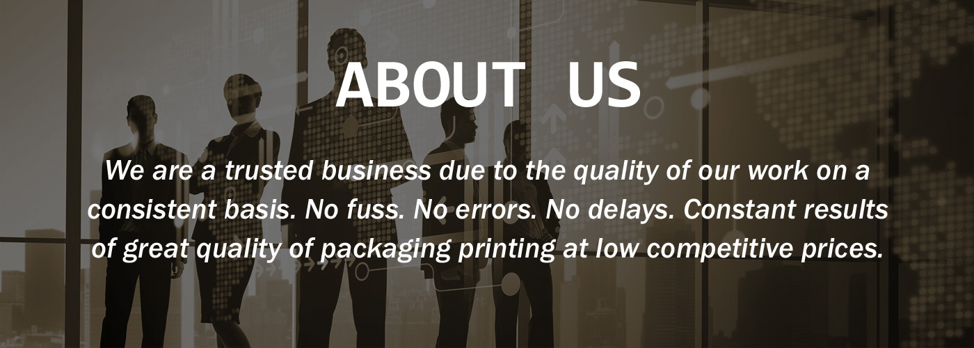 We are a trusted business due to the quality of our work on a consistent basis. No fuss. No errors. No delays. Constant results of great quality of packaging printing at low competitive prices.